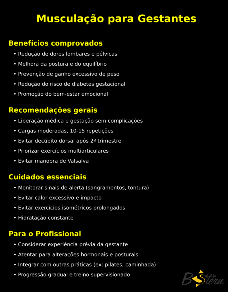 • A gestante saudável e treinada pode continuar musculando durante toda a gestação, com adaptações